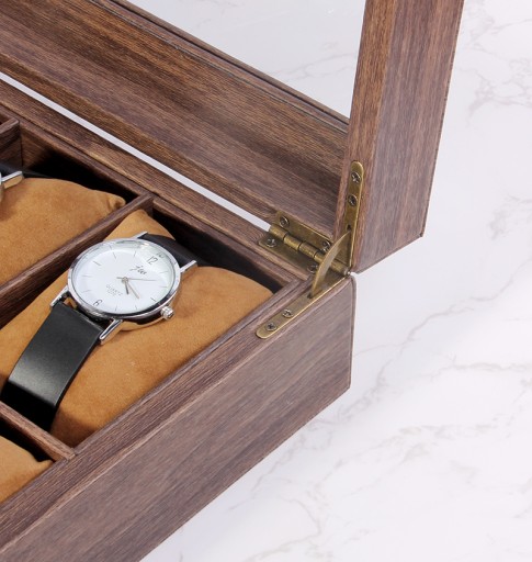 Specjalna miękka wyściółka gwarantuje dobre zabezpieczenie przed przypadkowym porysowaniem. Oprócz zegarków w pudełku można też przechowywać biżuterię.