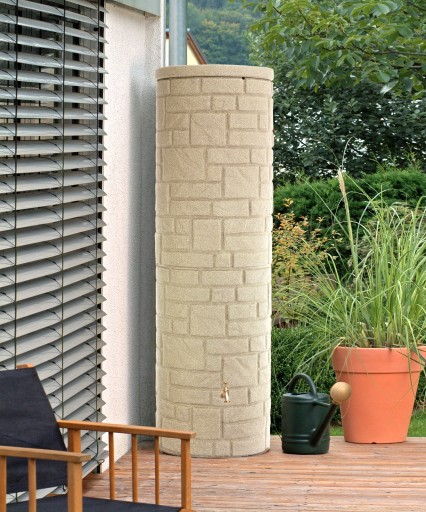 Zbiornik Arcado przekonuje realistycznym wyglądem kamiennej studni. Kolumna z naturalnego kamienia idealnie wpisuje się w kanony tradycyjnych ogrodów. Można go wykorzystać również do utworzenia wspaniałej kompozycji z wykorzystaniem małego kamiennego murku. Dostępny w trzech różnych pojemnościach 230 l, 360 l oraz 460 l.