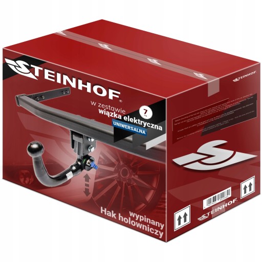 Kompletny hak holowniczy wypinana pionowo polskiego producenta Steinhof + uniwersalna 7-pinowa wiązka elektryczna z modułem