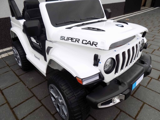 JEEP 4X4 zasilany na 12 V z napędem na cztery koła zachwyci nie jednego przyszłego kierowcę. Dzięki zastosowanym 4 silnikom każdy 35W, auto jeździ po nierównym terenie bez żadnych problemów.