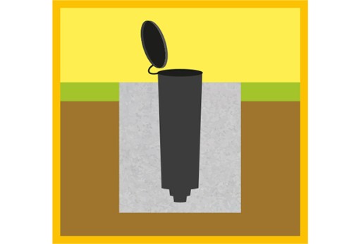 Zestaw zawiera w mocowanie do zamontowania w betonie lub ziemi.