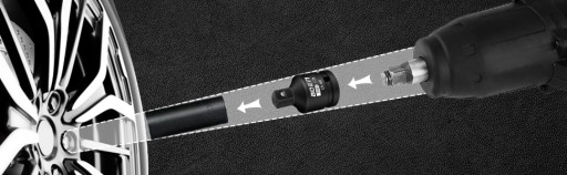Sprężynujące kulki detentowe wykluczają nasadki dzięki otworom przelotowym, które pozwalają na obsługę kołków i pierścieni blokujących. Otwór przelotowy na końcówce napędowej blokuje adapter mocno na końcówce napędowej.
