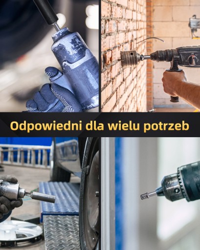 WYSOKA JAKOŚĆ Zestaw adapterów do nasadek udarowych wykonany jest z obrabianej cieplnie stali chromowo-wanadowej o doskonałych urządzeniach o wysokiej twardości. Adapter gniazda do wkrętarek wytrzymujący maksymalny moment obrotowy 72n/m. Sprawdzają się w zastosowaniach przemysłowych i przemysłowych.