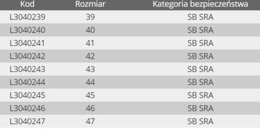 Półbuty robocze Lahti Pro L30402 wykonano ze skóry oraz tkaniny typu Oxford. Zewnętrzna konstrukcja buta w części tylnej wzmocniona tworzywem TPR. Podszewka z dzianiny siatkowej oraz wymienna wyściółka. Gumowa podeszwa o właściwościach antypoślizgowych na podłożu ceramicznym. Głęboki protektor zapewnia wysoką stabilność obuwia. Buty robocze z podnoskiem stalowym Lahti Pro L30402 posiadają deklarację CE oraz zgodne są z normą EN ISO 20345. Druga kategoria środków ochrony indywidualnej.