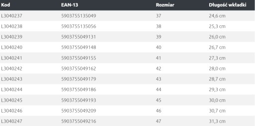 - Długość wkładki [cm]: 29,3