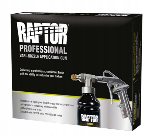 Pistolet U-POL Raptor Vari-Nozzle to wyjątkowe narzędzie dla profesjonalistów i entuzjastów konserwacji. Zapewnia precyzyjne, spójne i powtarzalne rezultaty przy każdej aplikacji. Jest nie tylko niezawodny, ale także intuicyjny w obsłudze, co sprawia, że staje się nieocenionym narzędziem w warsztacie.