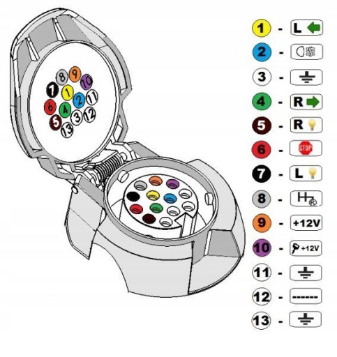 Jeżeli samochód będzie holował przyczepę o ładowności powyżej 750kg, potrzebna będzie wiązka 13PIN. Znajduje ona również zastosowanie dla bagażników rowerowych. Wiązka 13PIN posiada również światła cofania. Jest to ważna informacja gdyż Prawo o Ruchu Drogowym z dnia 1.08.2016 roku stanowi o wymogu posiadania świateł cofania w naczepach o ładowności powyżej 750kg.