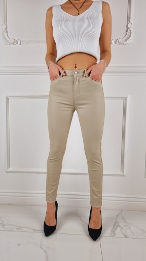 Świetne spodnie woskowane imitującą skórę, posiadają średni stan. Świetne do sportowego obuwia ale idealnie też sprawdzą się w połączeniu ze szpilkami, dzięki swojej uniwersalności, pasują niemal do każdej stylizacji. Elastyczny materiał podkreśla kobiecą sylwetkę. Spodnie są dopasowane, rozciągają się. Podkreśl swoje kobiece kształty! Spraw, by Twój codzienny Look był niepowtarzalny. Spodnie po obu stronach posiadają kieszenie.
