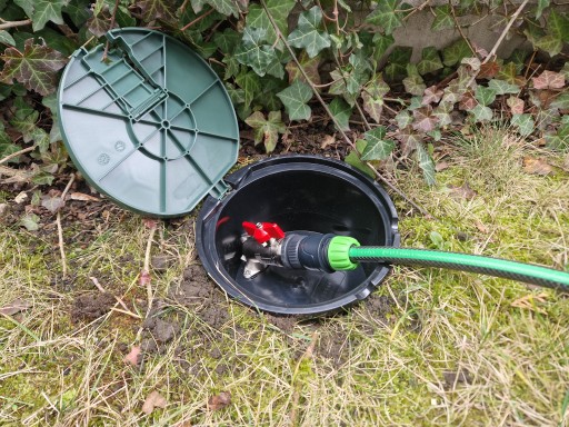 ✅ Studzienka poboru wody z zaworem 3/4 cala PEŁNA posiada pokrywę z dodatkową klapką. Pełna pokrywa studzienki zabezpiecza jej wnętrze przed ślimakami, stanowi dodatkową ochronę zaworu przed niską temperaturą oraz pełni funkcję dodatkowej ozdoby każdego ogrodu.