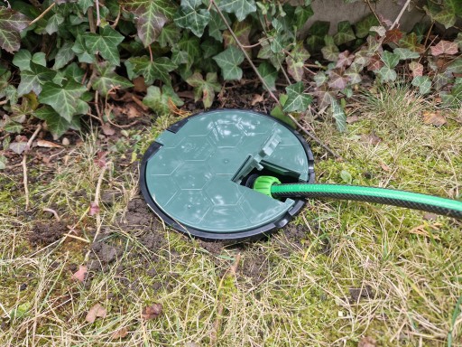 ✅ Wąż ogrodowy należy podłączyć do studzienki poprzez zastosowanie przyłącza pod szybkozłącze ogrodowe z gwintem GW 3/4 cala.