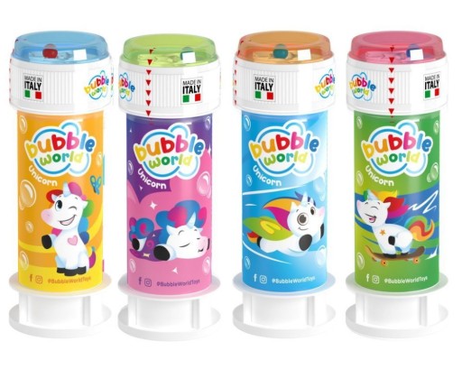 Bańki mydlane w plastikowym pojemniku z wizerunkiem jednorożców z pewnością ucieszą każde dziecko.