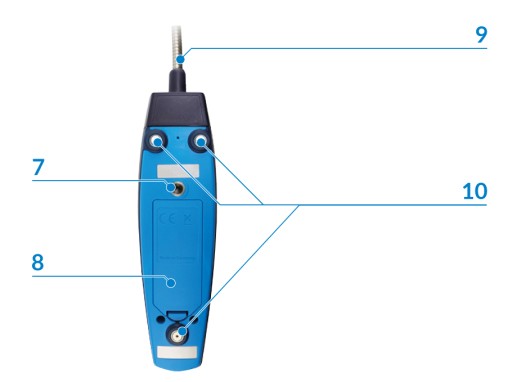 - Detektor gazu posiada na tylnej obudowie gwint statywowy 1/4". Zastosowane rozwiązanie pozwala przykręcić urządzenie do dowolnego wysięgnika posiadającego odpowiedni gwint statywowy.