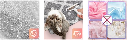 Miedziana strona ostrza doskonale usuwa futro i kłaczki z dywanów i grubych tkanin, takich jak wełniane płaszcze.