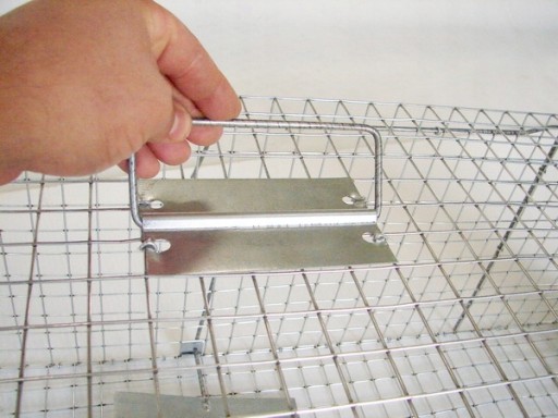 Pułapka posiada klapkę rewizyjną z tyłu - która służy do zakładania zanęty - to bardzo ważne by nie sięgać ręką w głąb pułapki ! W większości pułapek na rynku klapka rewizyjna to najsłabszy punkt - silny zwierz może wyrwać słabo zabezpieczona klapkę.