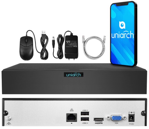 - Podgląd zdalny: oprogramowanie VMS Uniarch Client, przeglądarka WEB, aplikacja mobilna Uniarch