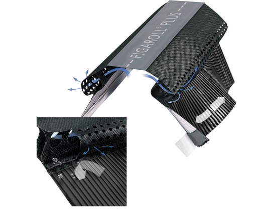Figaroll® Plus jest taśmą uszczelniająco – wentylacyjną o innowacyjnym, dwukanałowym systemie wentylacji, ułatwiającą doskonałą wentylację przy jednoczesnej ochronie przed deszczem i śniegiem. Mocne, a jednocześnie łatwe do plastycznego formowania aluminiowe krawędzie boczne taśmy zapewniają rozciągliwość na poziomie około 50%, co umożliwia optymalne pokrycie nawet wysokoprofilowanych dachówek. Niewątpliwym atutem taśmy jest szybki, łatwy i czysty montaż bez użycia specjalistycznych narzędzi. Wszystkie zalety nowej taśmy Figaroll® Plus sprawiły, iż zdobyła ona wiodącą pozycję na rynku wśród najchętniej wybieranych produktów przez europejskich dekarzy. Ta elastyczna taśma służy do uszczelnienia przejścia elementów przez folię dachową. Mogą to być przewody kominków wentylacyjnych lub odpowietrzników instalacji sanitarnej, okna dachowe itp. Zbrojenie siatką aluminiową zapewnia stabilność ukształtowanej formy.