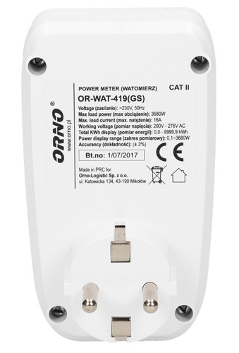 Watomierz umożliwia nam sprawdzenie zużycia prądu elektrycznego i obliczenie kosztów zużytej energii podłączonego urządzenia. Posiada duży wyświetlacz LCD oraz prostą konfigurację ustawienia pomiaru kosztów. Pomiar napięcia: 200V~ 276V~.