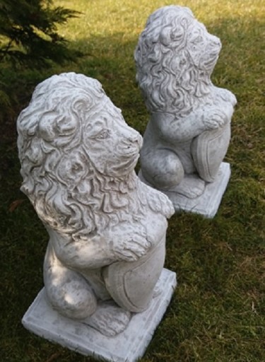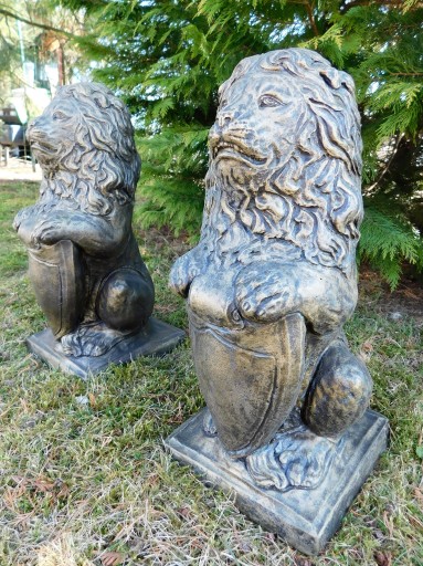 Zestawu lwów z tarczą (2 szt) malowanych w złotym kolorze