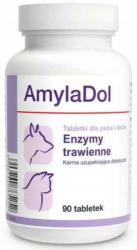 Przeznaczenie:AmylaDol to dietetyczna karma uzupełniająca dla psów i kotów.Wyrównuje zaburzenia trawienia. Zalecana przy zewnątrzwydzielniczej niewydolności trzustki.Skład tabletki1k-Enzymy: