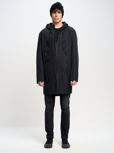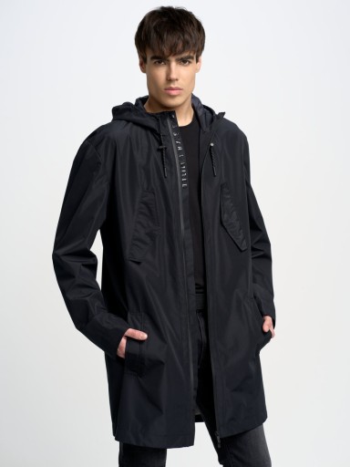 Niezastąpiony kompan każdego wakacyjnego wyjazdu! Wybierasz się na weekend w góry? Planujesz dłuższy urlop nad morzem? Bez względu na cel podróży, lekki płaszcz przeciwdeszczowy w uniwersalnym, czarnym kolorze to must have w Twojej walizce! Model to typowa, męska parka, dzięki czemu będzie pasować do każdej miejskiej stylówki. Wyposażony został nie w dwie, a aż pięć praktycznych kieszeni. Jedna para z patkami znajduje się na wysokości piersi, druga para klasycznych kieszeni rozlokowana jest po bokach, a dodatkowo wewnątrz znaleźć można jeszcze jedną kieszeń, zapinaną na zamek błyskawiczny. Parka BIG STAR ma ponadto regulowany kaptur, wodoodporny zamek, a zdobią ją silikonowy nadruk ton w ton oraz naszywka z logiem marki na rękawie.