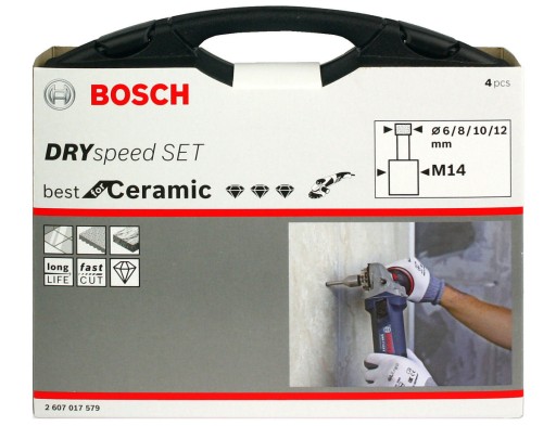 Zestaw 4 koron diamentowych do płytek seria DRY Speed for Ceramic firmy BOSCH składa się z: