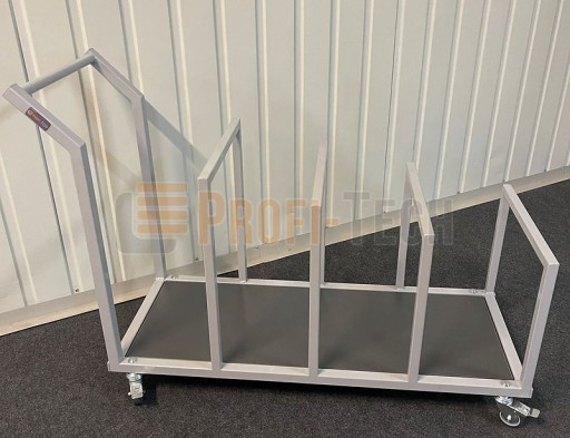Stoły i stojaki wykonane są z profili stalowych, które zostały trwale zabezpieczone za pomocą lakierowania proszkowego, krawędzie profili wypełnione są zatyczkami PVC.