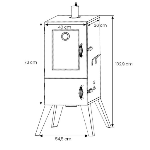 - Przeszklone drzwiczki, dzięki którym możemy kontrolować nasze wyroby bez otwierania drzwiczek (otwieranie obniżania temperaturę i wydłuża proces wędzenia)