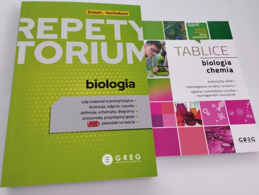 Na tej aukcji oferuję zestaw dwu pozycji Repetytorium Biologia dla Liceum Technikum oraz Tablice łączone Biologia-Chemia