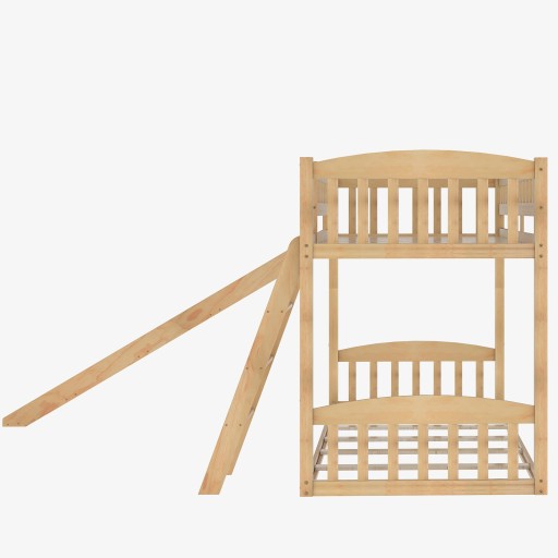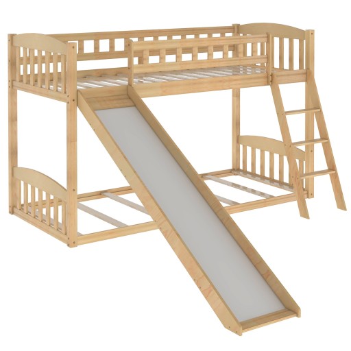 Łóżko piętrowe ze zjeżdżalnią, niskie łóżko dziecięce rama łóżka z litej sosny z listwami 90 x 200 cm, kolor dębu