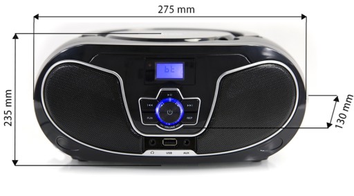 - Funkcje: Equalizer, Radio FM, Odtwarzacz CD, Wyświetlacz LCD (częstotliwość FM)