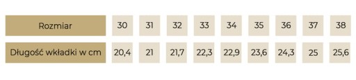 Przy wyborze rozmiaru obuwia prosimy sugerować się długością wkładki. Wszystkie długości wkładek zostały zamieszczone w tabeli poniżej.