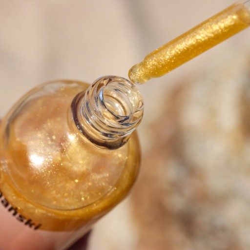 Błyszczący dodatek w postaci ekologicznego brokatu rozświetli Twoją skórę nawet w najgłębszej ciemności. Z tego względu produkt idealnie sprawdzi się na wszelkiego rodzaju imprezy i ważne wydarzenia. Olśnij towarzystwo – dosłownie! Suchy olejek do ciała z pewnością na stałe zagości w Twojej kosmetyczce.