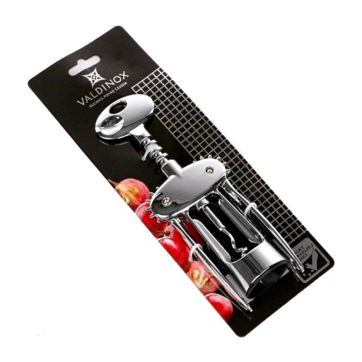 Korkociąg Valdinox to niezastąpione narzędzie do otwarcia butelki wina. Precyzyjny mechanizm zakończony poręcznym uchwytem ułatwia wkręcenie w korek. Dźwignia umożliwia bezproblemowe otwarcie butelki wina bez konieczności użycia znacznej siły. Oczko w pokrętle umożliwia powieszenie korkociągu na kuchennym relingu.