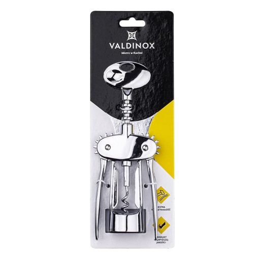 Korkociąg, podobnie jak wszystkie akcesoria Valdinox ma elegancki, tradycyjny wygląd. Wykonanie z trwałego stopu cynku gwarantuje długą i niezawodną pracę. Polerowana powierzchnia ułatwi utrzymanie w czystości