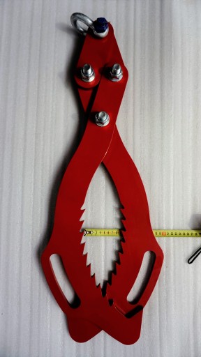Witam, przedmiotem aukcji jest chwytak służący do transportu drewna lub płyt Jumbo. Chwytak zaciska się pod wpływem podnoszonego ciężaru.