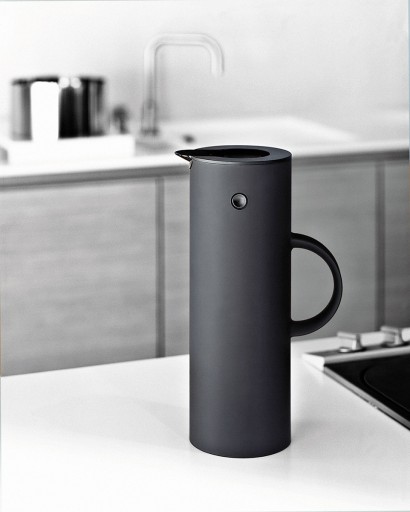 Termos EM 77 duńskiej marki Stelton zaprojektowany przez Erika Magnussena to klasyk skandynawskiego wzornictwa.Dzięki pięknemu i kompaktowemu wzornictwu, wyjątkowej jakości wykonania, a także unikatowemu rockerowi, dzbanek jest pożądanym i ponadczasowym projektem. Pochodzący z 1970 r. projekt do dziś zachwyca prostotą, precyzją wykonania i doskonałą jakością użytych materiałów. Doskonale wkomponuje się zarówno w nowoczesne jak i klasyczne wnętrze, będąc ozdobą kuchni i jadalni. Wykonany z wysokogatunkowego tworzywa ABS, wkład wykonany ze szkła termicznego. Wysokość 30 cm, średnica 10.5 cm, pojemność 1000 ml (1 litr). Produkt zapakowany w prezentowy karton producenta. Wyprodukowano w Danii