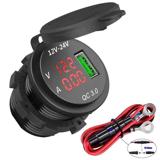 Woltomierz i amperomierz z szybkim gniazdem USB A. Łatwy w montażu, świetnie sprawdzi się na łodzi. Czerwone podświetlenie Led. W komplecie wiązka łączeniowa z bezpiecznikiem. Amperomierz mierzy pobór prądu z USB.