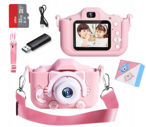 APARAT CYFROWY DLA DZIECI 12MPX SELFIE KOTEK + SD
