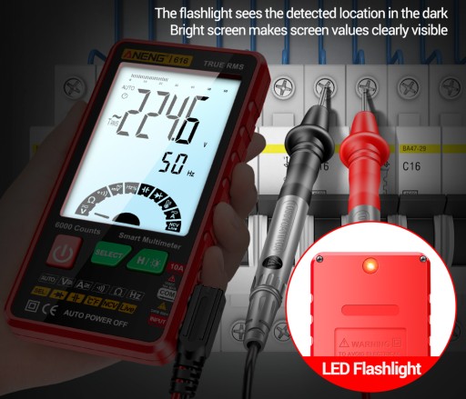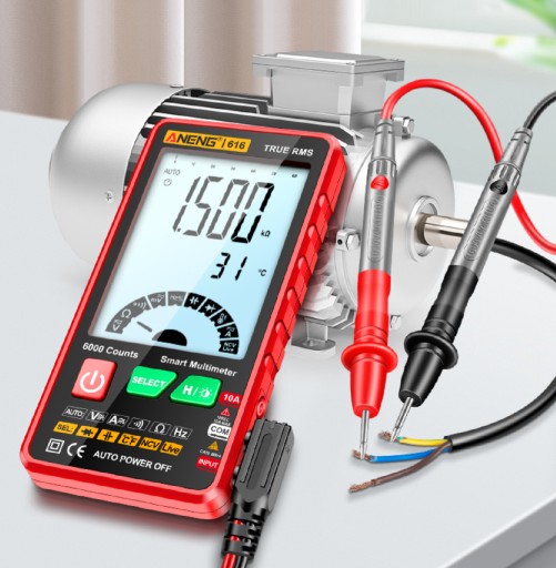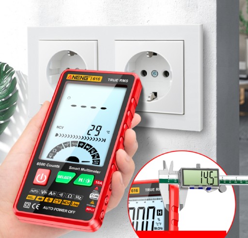 Inteligentny multimetr, który może mierzy prąd AC/DC, napięcie prądu stałego AC/, rezystancję, pojemność, temperaturę, częstotliwość, ciągłość i test diody, wykrywanie drutu przeciwpożarowego.
