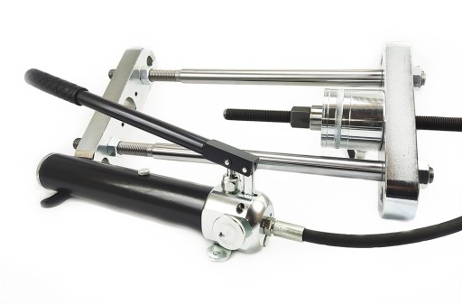 Prasa z siłownikiem hydraulicznym do wyprasowania i wprasowania sworzni bez konieczności demontażu układu.