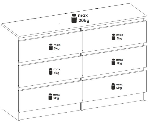 Komoda składa się z 2 paczek o łącznej wadze 42 kg