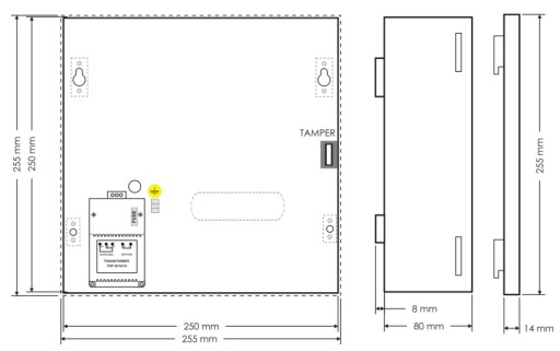 - nadajnika radiowego lub GSM, opcjonalnie modułu zasilacza buforowego