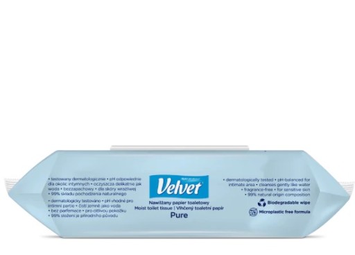 Nawilżany papier toaletowy Velvet Pure to delikatna pielęgnacja okolic intymnych oraz uzupełnienie codziennej higieny toaletowej dla każdego! Produkt przeznaczony jest dla skóry normalnej i wrażliwej.