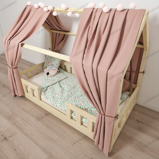 Łóżeczko Domek Luna + barierki 80x160 LACKIMEBLE
