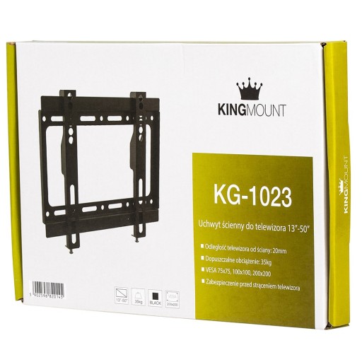 - W zestawie uniwersalny komplet śrub montażowych do telewizora oraz komplet wkrętów i kołków do ściany, poziomica