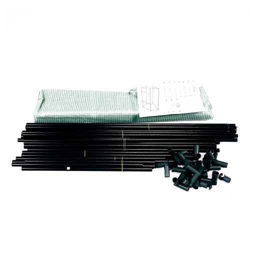 Komplet zawiera wszystkie elementy do montażu: rurki i łączniki do stelażu, folię i instrukcję.