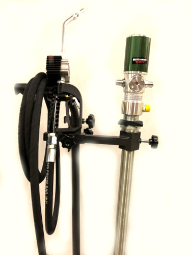 Przewoźny zestaw przystosowany do zasobników 50-60 kg, przeznaczony do rozprowadzania oleju o średniej i dużej lepkości: