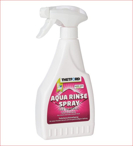 Thetford Aqua Rinse Spray to innowacyjny środek, który pozwala na utrzymanie toalety w doskonałym stanie, nawet w braku osobnego zbiornika na wodę do spłukiwania. Zamiast tradycyjnych środków dodawanych do spłuczki, ten spray tworzy warstwę ochronną na powierzchni toalety, ułatwiając spłukiwanie i zapewniając długotrwałe uczucie czystości. Dodatkowo odświeża toaletę, pozostawiając świeży zapach. Thetford Aqua Rinse to idealne rozwiązanie dla podróżujących kamperem, zapewniające higienę, oszczędność wody i komfort podczas podróży.