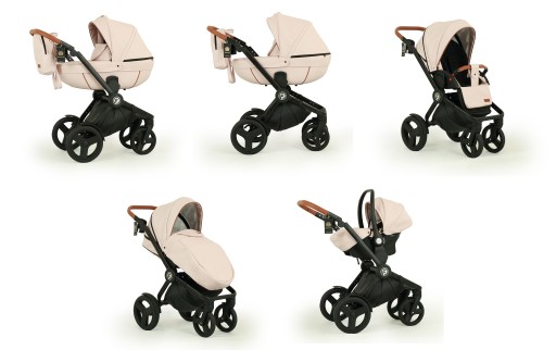 - Możliwość wpięcia gondoli, spacerówki oraz fotelika samochodowego (elementy można wpinać przodem i tyłem do kierunku jazdy)