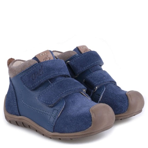 Wykonany w całości ze skóry naturalnej, która dostosowuje się do stopy dziecka i nie powoduje otarć, z zabudowanym noskiem nie do zdarcia.